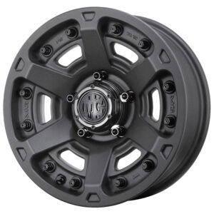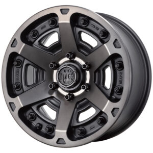 骨太で強烈な6スポークがリムまで伸び、大型のボルト装飾によるビードロックテイストとしっかりマッチしている。ラギッドテレーンのゴツいタイヤとも相性の良いホイールとなっている。