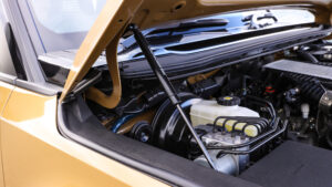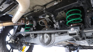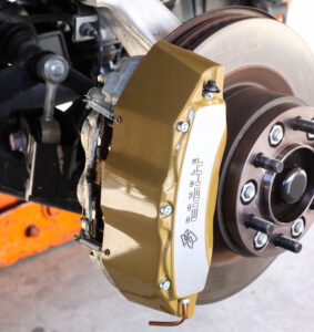 乗り心地や安定性を重視したいユーザーのために、GMGではオリジナルのビルシュタインショックセットも発売中。デモカーはプロスタッフのスプリングを使用して、フロントは35㎜、リアは25㎜のリフトアップを実施している。そのスタイルからは想像できない控えめなリフト量なので、ラテラルロッドはノーマルを使用する。