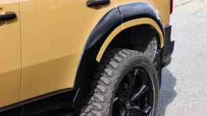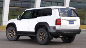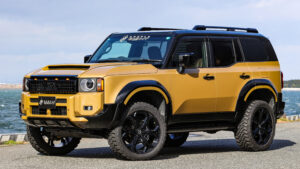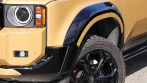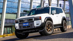 ランドクルーザーをラグジュアリーなスタイルにアレンジすることで、一躍その名を知らしめたGMG。だがトヨタが同車に対する方針を変更したことや、世の中のアウトドアブームの影響を受け、オフロードスタイルを求めるユーザーも少なくない。そこでGMGでは、エアロパーツの製作で培ったノウハウを元に、エアロとは異なるボディパーツを各種ラインナップ。従来のエアロパーツとは異なり、都会にも映えるスタイリングパーツと言えるだろう。