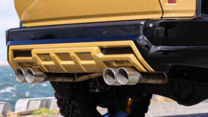アンダーガードのようなデザインを採用するハーフスポイラーを装着。ノーマルバンパーは表面処理を施しグロスブラックにペイントする。また左右4本出しのマフラーに交換し、アグレッシブなリアビューを演出できる。マフラーはガソリン/ディーゼルそれぞれ専用を用意。もちろん保安基準に適合する。