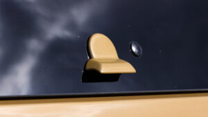 リアワイパーをレスにする時に必要となるワイパーホールカバー。素材はFRP製で、合計7つのカラーバリエーションがあり、デモカーはあえてボディ色にペイント。単なるカバーではなく、窓の開閉時にフックとしても役立つ形状を採用。