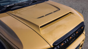 ちなみにGMGではドレスアップだけでなく、機能にも力を入れている。リフトアップ車には欠かせないサイドステップだが、乗降性を考えると低い位置にセットしたいが、スタイルを重視するなら高い位置にしたい。そんな悩みを解決するのが、電動サイドステップ。またボンネットダンパーも便利だが、車高が上がるとボンネットを閉めるのにもひと苦労。そこでレーシングカーを彷彿とさせるプルハンドルも用意している。
