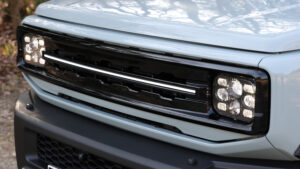 エクステリアはこれまで培ったノウハウを注ぎ込み、リフトアップやオールペンを実施。また、今春発売予定のシエラ/ノマド専用のオリジナルホイール「KANONE」を装着して逞しさも引き出している。その中でもっとも注目したいのは、角形のLEDヘッドライト&デイライトを装備したフロントフェイスキット。単なるショーモデルではなく、初夏頃の発売を予定しているので、イメージチェンジを図りたいジムニーオーナーは楽しみにしていて欲しい!