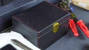 ウィステリアに入庫したクルマのキーレスは全て電波を遮断する特殊な保管ボックスで保護される。手間はかかるものの、車両窃盗の手口を研究しているからこそ、プロとしてもしっかりとした対策を日々講じているのだ。