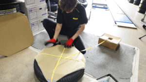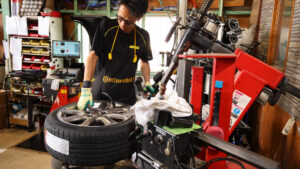 港店店長の竹内さんをはじめ、スタッフは自動車業界に身を置き数十年というベテランが揃っている。実店舗で装着するタイヤだけでなく、オンラインで販売されるすべてのタイヤは店舗で組まれている。バランス取りなどはもちろんだが、タイヤの取り付けもセンター出しをしっかりと行なうことでタイヤのパフォーマンスを引き出す。また、DIYで取り付ける人にはアドバイスもしてくれるので購入時に聞いてみるのもいいだろう。