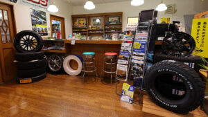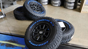 デリカオーナーに人気のブランドは「トーヨー」、「ヨコハマ」、「BFグッドリッチ」の御三家。サイズは16インチでオフロード色を強くしたサイズが人気だが、純正サイズの17インチを選ぶ人も多いとのこと。購入時のカスタムイメージを伝えてベストな1本を選ぶのもいい方法だ。
