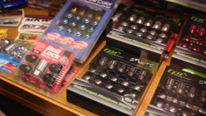 タイヤエイトの安さの秘密は一括大量仕入れ。そのため店舗内には数百本のタイヤが山と積まれている。ちなみに自社倉庫には数千本のタイヤをキープ。ホイールの在庫数も圧巻で品薄な人気モデルも揃っている。もちろん屋内保管で品質管理も完璧なので安心して購入できる。
