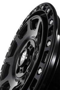「MUD VANCE(マッドヴァンス)06」は、10本のスポークがセンターに向かって直線的に落ち込み、さらにスポークエンドで落ち込むデザインを特長とする。無骨な印象がかっこいいザラザラ塗装はタイヤエイトのオリジナルカラー。