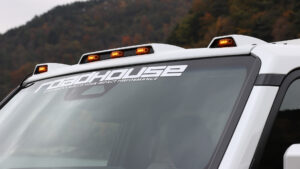 フロントウインドウの上にアクセントを与えてくれるルーフマーカーランプ。制動時にルーフに溜まった雨や雪がフロントウインドウに流れ落ちてくるのを防ぐ効果も期待できる。