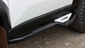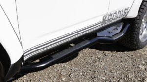 ランクル300にもサイドステッププレミアムを装着。リフトアップユーザーのマストアイテムで、家族がいるなら尚更必要となるアイテムだ。