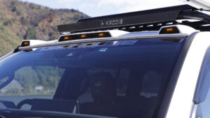 ランクル250と同形状のルーフマーカーランプを装着。夜間や悪天候時に、対向車に自車の存在をいち早く示すことができるので、安全性の向上に繋がる。
