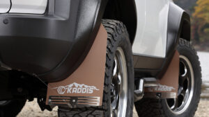 大きなタイヤを装着すると4WDの逞しさはより一層強調される。タイヤの大径化にはリフトアップが必要となり、単純に車高を上げてしまうと車体への負担増や直進安定性などの低下を招きかねない。そこで重要なのが補正パーツを含めた整合性のあるリフトアップだ。