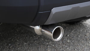 片側シングル出しの、シンプルなエルフォードのレボルシオンマフラーに交換しトルクをアップさせる。保安基準に適合しているので、装着したまま継続車検をクリアできる。