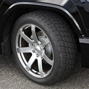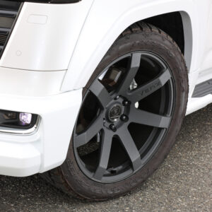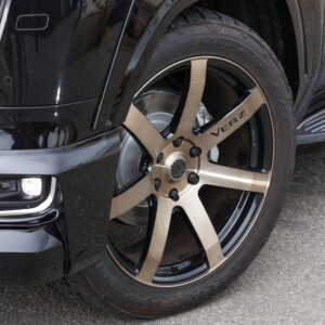 22インチに極太の7本スポークを組み合わせた、スポーティ性と野生味を融合させたVERZ-RACING FORGED VRF01L。スポークを屈折させることで、大きさだけでなくホイールの深みを演出する。その名が示す通り、軽さと強度を両立する鍛造製法を採用。