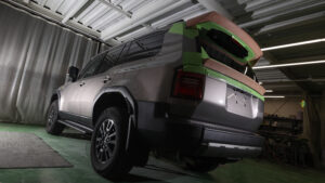 オフロード色を強調するパーツは各社から続々と発売されているが、ボディパーツにこだわり続けるKUHLでは、今までの路線を継承したFRP製のリアウイングを鋭意開発中。ここでは全貌を紹介することはできないが、2026年の東京オートサロンでお披露目される。