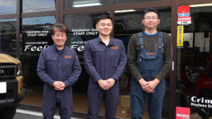 代表の佐野氏(左)を含め3名のインストーラーが揃うフィール。スタッフはともに10年以上在籍するベテラン。熟練の域に達してなお研修を行ない技術向上に努めているという。2026年からは新しいスタッフも入社し4名体制でインストールを行なう予定となっている。