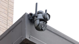 クルマを守るには駐車環境から。フィールのお勧めがこのBELLOF製ネットワークカメラ。赤外線も搭載し動体を探知すると自動で録画し、スマートフォンで見られるという。ソーラー電池なので電源切れの心配もない。