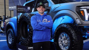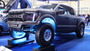 FORD F-150ラプターをベースに、砂漠地帯での走破性を高めるためにサスペンションを強化した「デザートレーシング・プレランナー・スタイル」で、SCOREシリーズのサポートカーとして活躍する本格オフロード仕様の1台。装着タイヤはなんと日本未発売モデル・参考出品のOPEN COUNTRY R/T PRO。