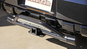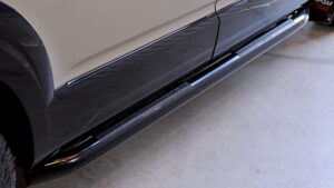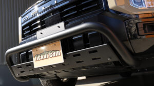 前中期型と似て非なるのがフロント周り。新型とは異なるためそれ専用に設計されたMONOBOX製のフロントバンパーガード(ブッシュバー)を装着。身にまとうことでアグレッシブなスタイリングに変更できる。またコーナーセンサーの作動を活かすように設計されており、安心して装着できるのも高ポイントだ。