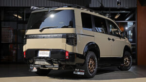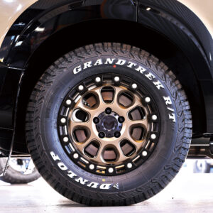 このスタイリングにさらなる完成度を与えるのがタイヤ&ホイール。ダンロップのグラントレックR/T01と新サイズのMKW M204でボディとのカラーコーディネートも行なっているのだ。
