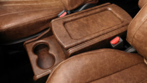 シートの間にはクラフトプラスとコラボした同色コンソールをセット。さらにインテリアを機能的に整理できるIPF製のストレージパネルは穴開けの必要もなく、ボルトオンで装着可能で、カップやポーチをセットすれば車中泊時に便利。また、INNO Xrideサイドバーは工夫次第で使い方は自由自在。
