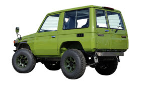 ベース車は程度だけでなく仕様にもこだわって仕入れているというダイレクトとちぎ。このクルマはショートでメーカーオプションのサンルーフとデフロック付きという個体。こうしたレアモデルを探し出すのは浦川氏の嗅覚だ。