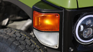 ハイマウントストップランプのプラスチックパーツは塗装して新品同様の姿へとリフレッシュ。テールライトはハイマウントと同形状のLEDに変更し泥臭さを排除。ハイマウントとの統一感を生み出し街中で映えるオシャレな雰囲気としている。