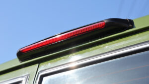 ハイマウントストップランプのプラスチックパーツは塗装して新品同様の姿へとリフレッシュ。テールライトはハイマウントと同形状のLEDに変更し泥臭さを排除。ハイマウントとの統一感を生み出し街中で映えるオシャレな雰囲気としている。