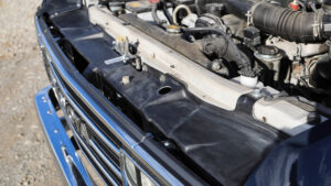 ボンネットは純正をベースにファーストサインで95プラドに合わせて設計したオリジナル品。後端のデザインも見事に再現されている。ワイパーカウルは純正を使用するが違和感はなくまるで販売モデルのよう。さらにボンネットの裏側は骨組みがしっかりと設計されており、走行中のバタつきなども皆無。ボンネットのキャッチは純正を使用しており運転席から開閉することができるので実用性の心配もない。