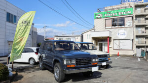 ベースとなるのは95プラド。このクルマはユーザーが持ち込みカスタムを依頼。オーダー内容としてはフロントの60フェイス化とオールペンだ。ボディカラーはラングラーの純正色であるライノークリアコート。色番号がないカラーやオリジナル色、さらにラプターなど特殊な塗装にも対応してくれるとのこと。また劣化したパーツは純正、もしくは社外パーツへの交換も可能。さらにサスペンションの交換やエンジンのオーバーホールも可能だという。ちなみに車両も含めた参考価格は330万円だ。