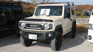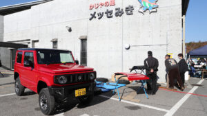 三木スズキの主催で、ドレスアップコンテストを開催。もちろん車種の制限はなく、今回は15台がエントリー。見事優勝したのはデリカD:5の山本さんで、副賞として赤色にオールペンされた世界に1台だけのジムニーシエラキッズカーが贈られた。