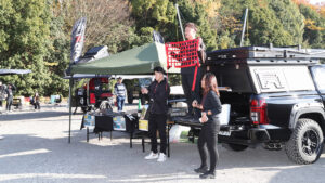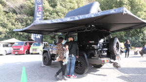 会場の外には、Weedや三木スズキが製作した様々なカスタムカーが整列。またiKamper各種を展開した状態で展示されており、テントの居住性を体感することも可能。午後にはインスタライブでオークションも開催する、体感型のコンテンツを多数用意。