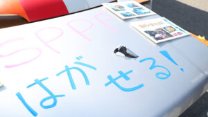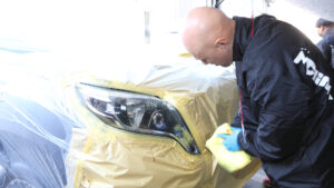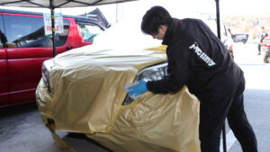 エムクライムビレッジの最大の目的は、長年お付き合い頂いているユーザーに感謝の気持ちを伝えること。またユーザーだけでなく、その家族も一緒に楽しめることを大切にしており、クルマのイベントというよりも縁日的な雰囲気が強い。もちろんパーツの展示&即売会に加え、オークションも開催。またイベントの待ち時間を有効活用してヘッドライトのコーティングも実施しており、タイパも非常に高いとも言えるだろう。