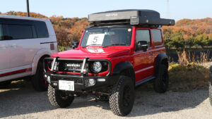 2000年に兵庫県・三木市で創業し、兵庫県と福井県に4店舗を構えるエムクライムグループ。今までウィードパラダイスという名称でファンや地元に向けた感謝祭を開催してきた。近年は車種限定のジムニービレッジやデリカビレッジも開催しており、名称を統一するためにエムクライムビレッジに変更。秋晴れの下、各地から様々なオーナーが集合した。