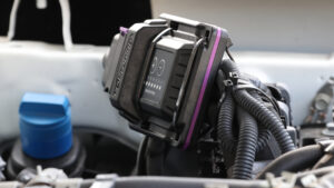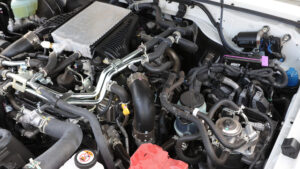 飯島さんの日常の足であり、2025年のAXCRではサポートカーとしても活躍するGDJ76。一般的にTDIチューニングはエアクリーナーボックスなど、平らな部分に装着するが、GDJ76にはそういった場所が見当たらない。エンジンルームに余裕があるので松浦代表も「専用の取り付けステーを開発するべきですね」と語っていた。