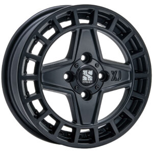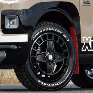 いわば〝十字スポーク〟とでもいうべきか、力強い4本スポークフェイスと深みのあるアウターリムによって、軽自動車の足元にタフでメカニカルな存在感を与える。さらに外周に配置されたウインドーデザインは、ラリーホイールを思わせる機能美を強調。加えてリム形状は砂や泥を落としやすい構造となっており、アウトドアでの使用にも適した実用性を備えている。