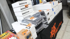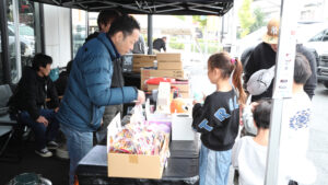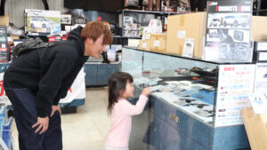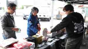 パーツ購入で参加できるガラガラ抽選会を実施。キッズにはお菓子の配布もあるので、次回は家族みんなで参加してみよう。