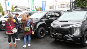 MKW&BRUTは、デリカにジャストフィットするホイールを一挙に展示。またホイールとは切っても切れない関係になるタイヤも数多く展示。愛車のポテンシャルを向上できるTDIチューニングは、愛車を使用した体感試乗会を実施し、多くのユーザーが購入していた。