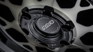 アルミ鍛造プレスで成型されたセンターキャップはツヤ消しブラックされたアルミヘアライン仕様。センター部の質感を高めることでホイール全体の一体感を高めている。