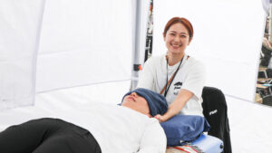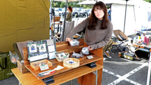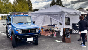 ジムニー女子のオプカン女子。その本職は理学療法士であり「カラダメンテ」の屋号でマッサージを行うセラピストのblueさん。この日もクリエーターブースに愛車のJB64とカラダメンテブースを出展。