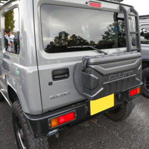 11社のジムニープロショップ11社が選ぶドレスアップコンテストを実施。主催者であるシーエルリンクは、同社のコンプリートカーであるCL20のオーナー、ナカガワさんを選出。2インチアップ、オールドスタイルスチールホイールなどのコンプリートパーツに加え、人気アイテムのリアゲートボックスを追加装着している。