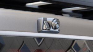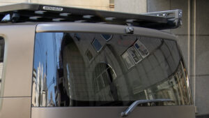 カメラカバーはデリカD:5専用設計なのでリアゲートへのフィット感が完璧。スマートなデザインで後付け感もない。