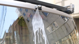 ウォッシャーノズル部分にカメラを取り付けるが純正ウォッシャー機能はそのまま利用可能。配線類なども裏に隠せる仕様。