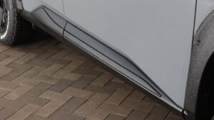 森本 : エクステリアカスタムは、単に外装パーツを追加するだけでなく、ノーマルの外装パーツにゴツゴツ・ザラザラした質感の強靭な塗膜が特徴的なラプターライナーを施行しています。これで劇的にタフな印象に変わってくれました。