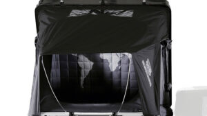 ハードシェルタイプでテント内に寝具などを収納できるため、ベッドメイクの時間を短縮できる。もちろんテントとしての機能も高品質。広々としたインテリアには9ゾーン断熱マットレスと断熱ルーフが含まれ、断熱効果も高く、より快適に就寝できる。