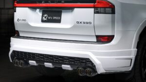 そんなGXの素性を更に引き出し、魅力的に仕上げるのがエムズスピードの「LUV LINE」。高級SUVのためのカスタムブランドと言っても過言ではなく、まさに同社が培ってきた手腕を存分に活かせるモデルだ。