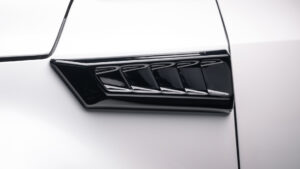 Aピラーの下側部分に装着する、ABS製のフェンダーダクト。ボディに加工を施したくないと思うユーザーでも、これならスタイリングを手軽にアレンジできる。トヨタ202ブラックに近い色を実現したピアノブラック仕上げは、未塗装でも高い耐候性を実現しているのが特徴と言える。
