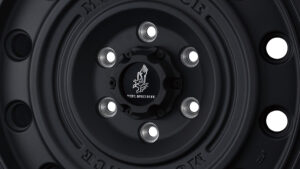あえて流行の複雑なデザインとは距離を置き、12個の丸穴ディスクと深い段差でセンター部を際立たせる、レトロなディッシュスタイルを現代風にアレンジ。円を基調としたディスク面には、マッドヴァンスのロゴ刻印やそれらを繋ぐようなディンプルラインが配され、ディテールへのこだわりが光る。また、各丸穴の縁に設けられた立体的なリブなど、視覚的な奥行きも強調。ミリタリー由来の無骨な造形美が、マシンの足元に頼もしいインパクトと遊び心ある存在感をプラスしてくれる。