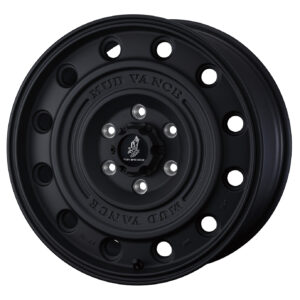 デザインの核は、サークルディッシュとレンコンディッシュの融合だ。12個の丸穴は縦壁にリブを設けることで立体的な造形とし、センター部やリムの強烈な深さでミリタリーなテイストを強調。内側の円には「MUD VANCE」の鋳出しロゴを配し、アグレッシブなアクセントとしている。