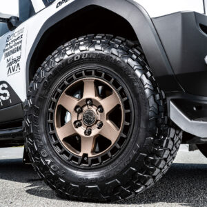 カラーは、定番のマットブラック、トレンドのブロンズ系に加え、グロスシルバーを設定。ランクル250/300への対応サイズとしては、17インチは30〜40㎜オーバーフェンダー用、18インチは純正フェンダー用をラインナップ。